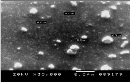 SEM electron micrograph of the SNPs biosynthesized by the tested bacterium.