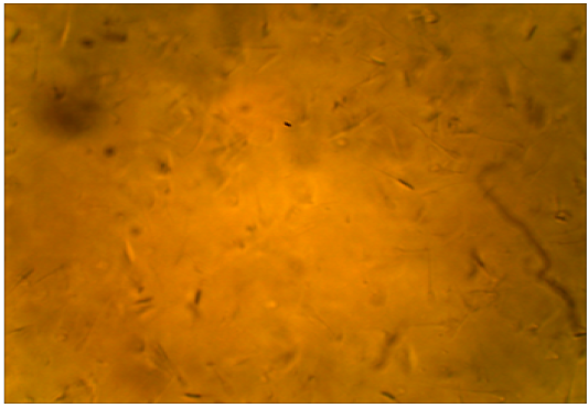 A live sperm penetration majority of cervical mucus in unaffected cow. X400
