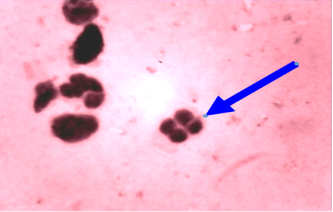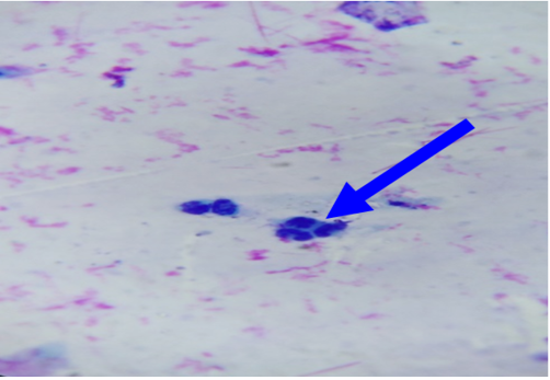 Polymorphonuclear cell (arrow) mucus subclinical endometritis. Giemsa stain X1000