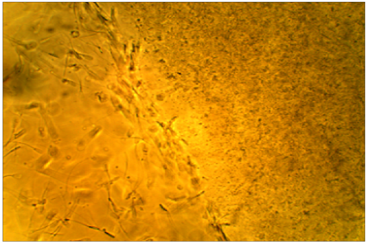 Died sperms after a short distance of mucus penetration in subclinical endometritis cow. X400.
