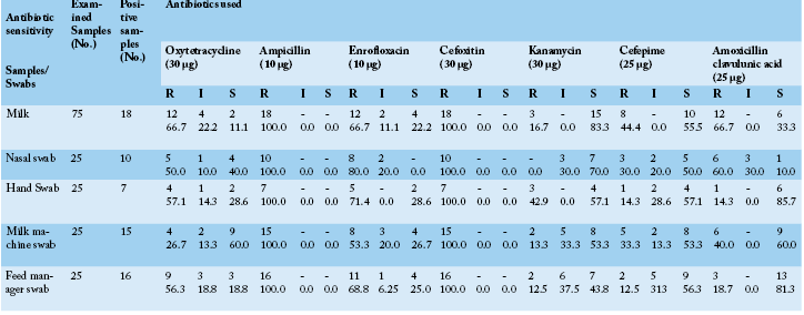 S. aureus sensitivity isolated from cows, attendants and their environment against seven antibiotics using disc diffusion method in- vitro