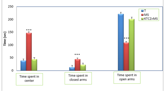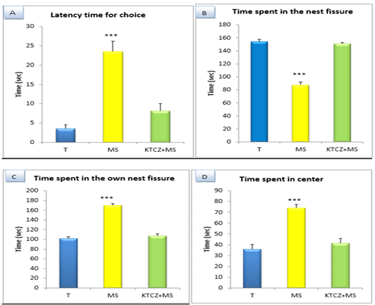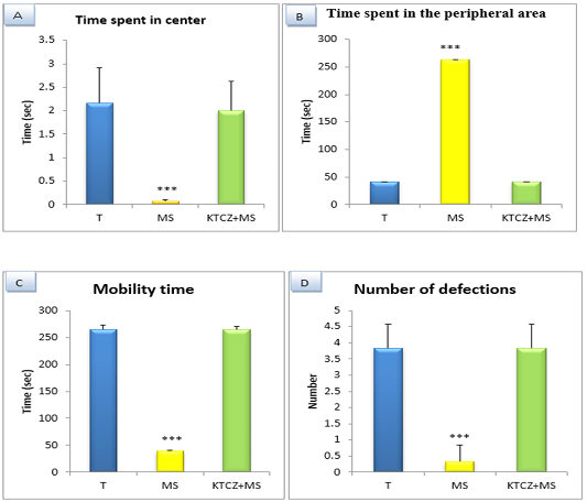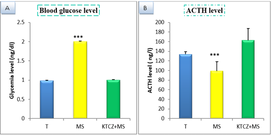 (T: Temoin, MS: maternal separation, KTCZ: ketoconazole, * p < 0.05;**p < 0.01; ***p < 0.001).
