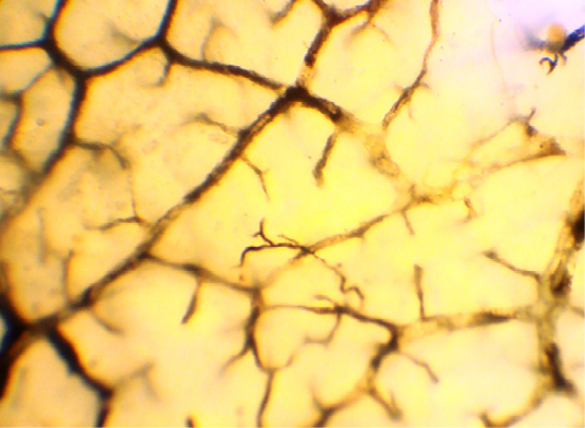 The clarified total preparation. Lymphocapillary net of the longitudinal muscular layer of the abomasum.
