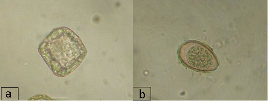 a) Egg of Moniezia sp.; b) Oocyst of Eimeriа sp.