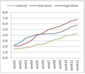 Effect of adenosine injection for twelve weeks on testosterone concentration (ng/ml) of rabbit males (pre puberty).