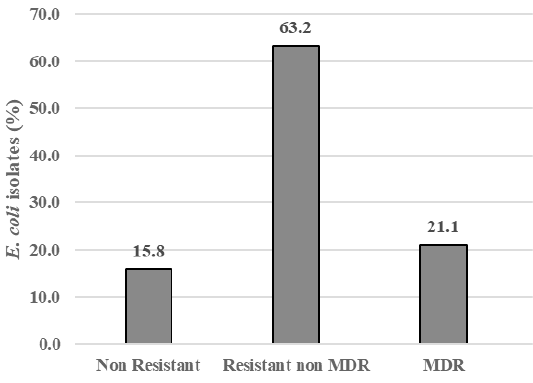 The percentage of MDR E. coli in Döner kebab meat sold at Dramaga Bogor.