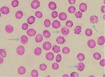 Piroplasmic form of T. annulata using Giemsa staining method.