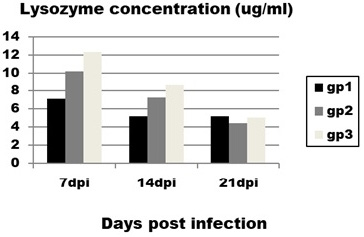 Effect of CAV infection on lysozyme concentration. Results expressed as mean±standard error.