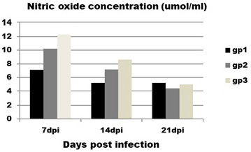 Effect of CAV infection on nitric oxide (NO) concentration. Results expressed as mean±standard error.