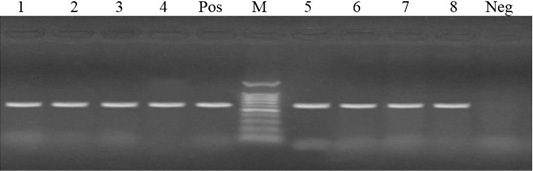Pos.: positive control; Neg.: negative control; M: DNA ladder.