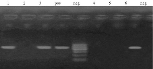Neg: negative control; pos: positive control; M: DNA ladder.