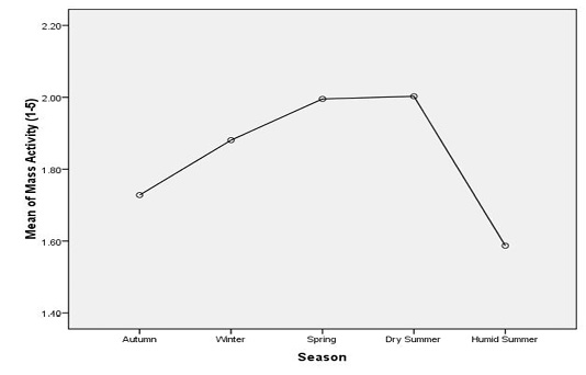 Overall variation in mass activity of Sahiwal bulls semen in different seasons of the year