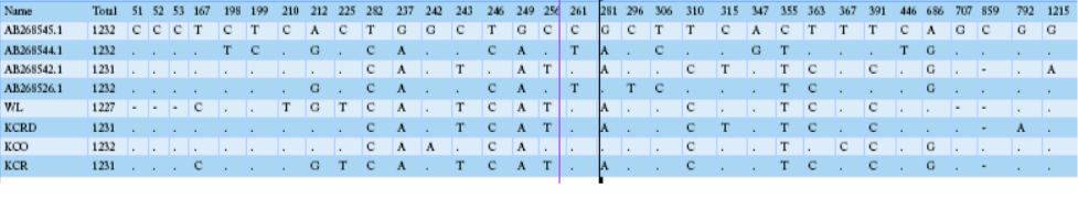The identified SNP positions and haplotypes using the mtDNA D-loop control region in Korean native chickens