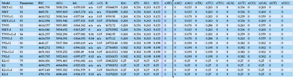 Maximum Likelihood fits of 24 different nucleotide substitution models