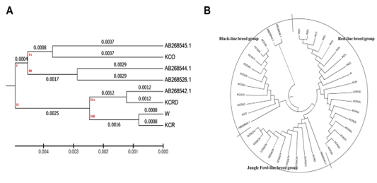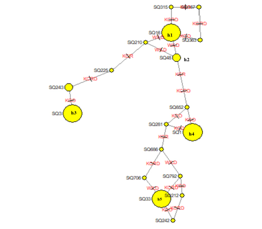 Molecular phylogenetic analysis using maximum likelihood estimation and median-joining network profile of the haplotypes identified in Korean native chickens