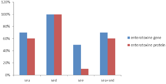 Percentage of enterotoxin genes and protein in S. aureus isolates.