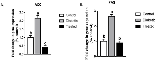 Effect on hepatic mRNA expression of (a) ACC and (b) FAS in adult male rats. Means with different superscripts are significantly different at P < 0.05.