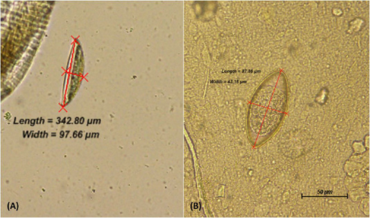 Comparison of pinworm ova; Syphacia oblevata (A) and Aspiculuris tetraptera (B).