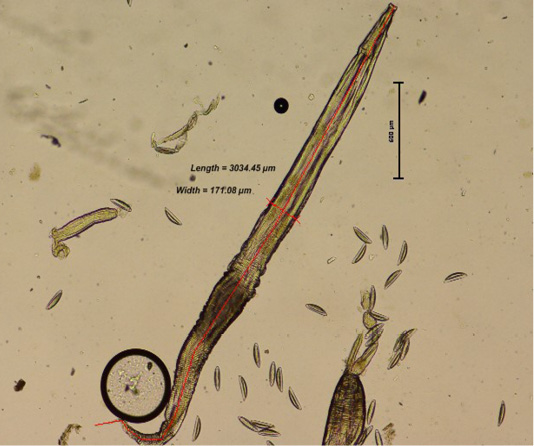 An adult female, Syphacia oblevata with the presence of ova (arrow).