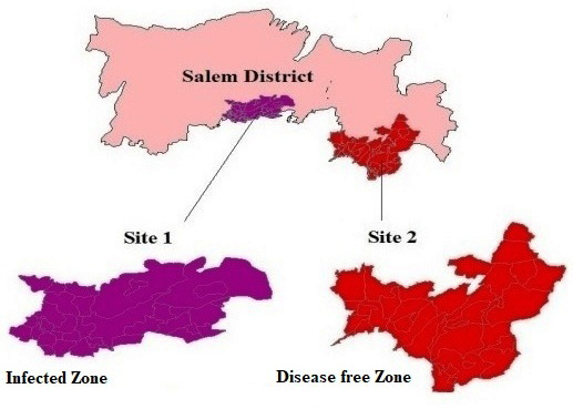 Active surveillance in infected zone (Site-1) and Disease free zone (Site-2).