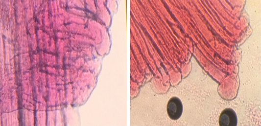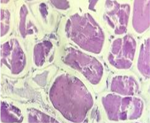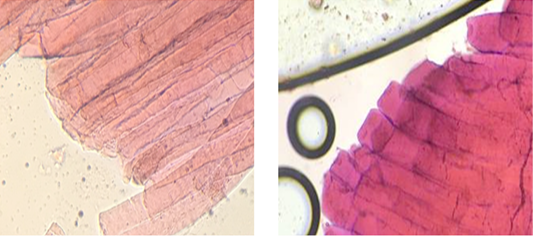 Micro-picture of defrosted turkey meat in native preparations.