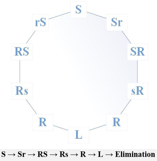 A conceptual model of development the epizootic process of brucellosis in animal populations with and without immunity. A: The population of non-immune animals with brucellosis circulating in them at different stages; B: Immune reindeer populations (permanent immunity), with flowing brucellosis.