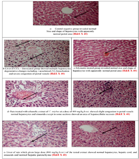 Hepato-pathological findings of Cichorium intybus L ethanolic extract in rat’s liver.
