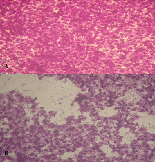 HepG cells treated with A. fumigatus extract at 10µg (A); at 100µ g (B).