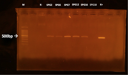 PCR results of the kidneys using LipL32 forward and reverse primers. M: marker; K +: positive control; K-: negative control.