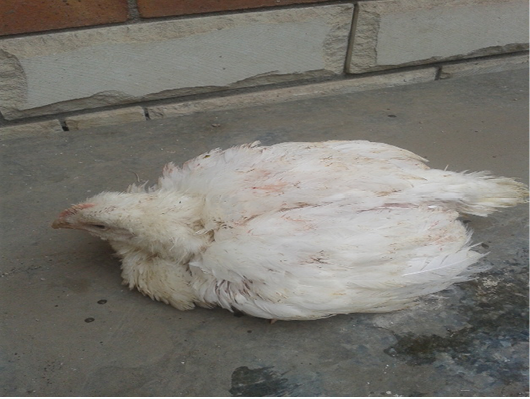 Clinical signs of group (2) broilers treated with OTA. Show restlessness, emaciation, dullness and ruffled feathers