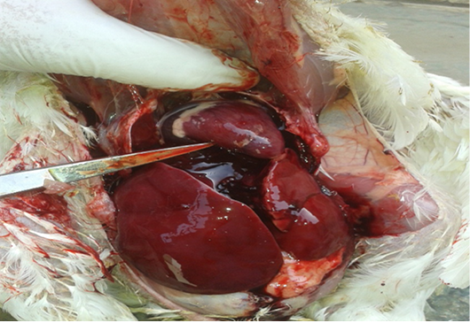 Postmortem lesions of group (2) broilers treated with OTA. Show enlargement and congestion in internal organs, hemorrhage and friable liver.