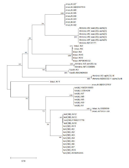 Molecular phylogenetic analysis by maximum likelihood method of resistance genes in different Staphylococci aureus isolates