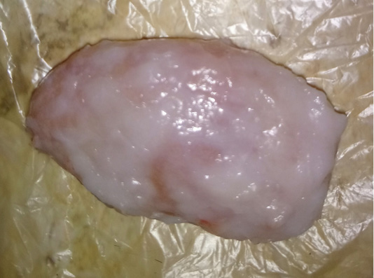 Macrophotograph of lymph node showing enlargement and sub-capsular hemorrhages.