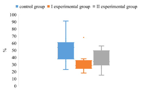 The dispersion of the CV index for the determination of IgG to the antigen gB in the blood of pigs on the background of different vaccination schemes against the pseudorabies virus