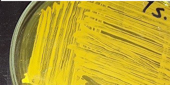 Heavy growth of yellow colonies of S.aureus on Mannitol salt agar media