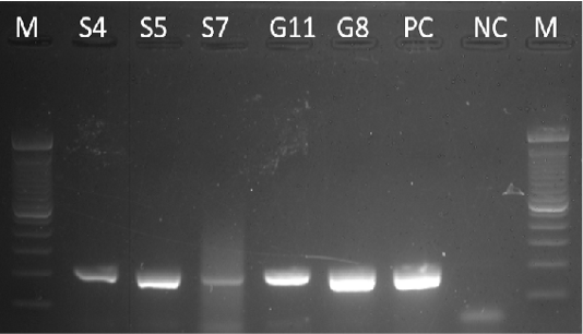 Gel analysis using the Beta-actin gene. M – 100 bp DNA ladder, PC – Positive Control, NC – Negative Control
