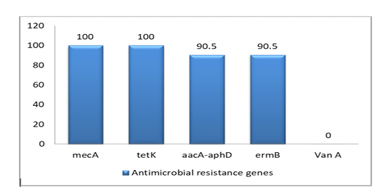 Antimicrobial resistance genes of S. aureus isolated from duck farms