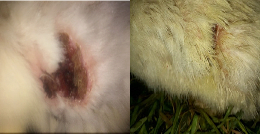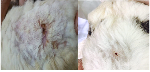 Show the scar tissue in two groups at 7th days; A- synthetic group, B- natural group