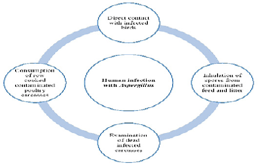 Methods of Aspergillus transmission from birds to human.
