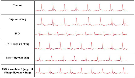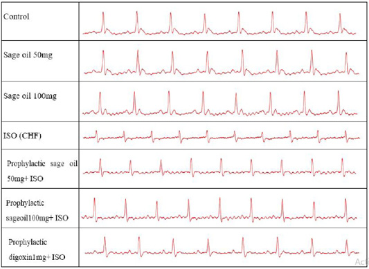 Effect of sage oil on ECG records in isoprenaline-induced CHF in rats (curative)