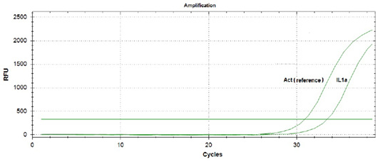 Amplification curves of actin gene (Act) and interleukin 1α gene (IL1α).