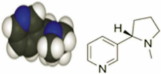 Nicotine Structural chemical formula (Jalili et al., 2014). N (nitrogen), H (hydrogen).