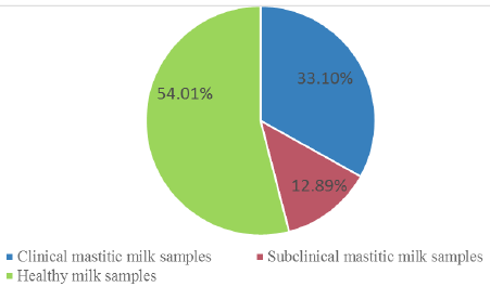 Incidence of clinical, subclinical mastitic and healthy milk samples.
