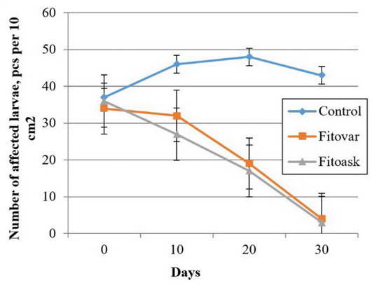 Fungistatic action of different herbal preparations on the course of ascospherosis in bee colonies (as of 12.05.2020), n=5.