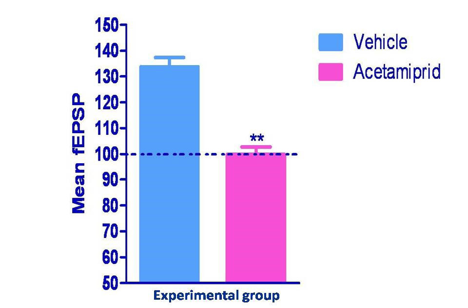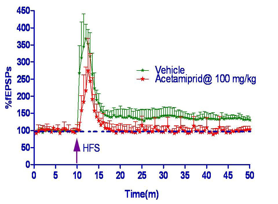 Normalized values of field potential in experimental groups were differed significantly (p≤0.01) where Acetamiprid was administered @100 mg/kg)