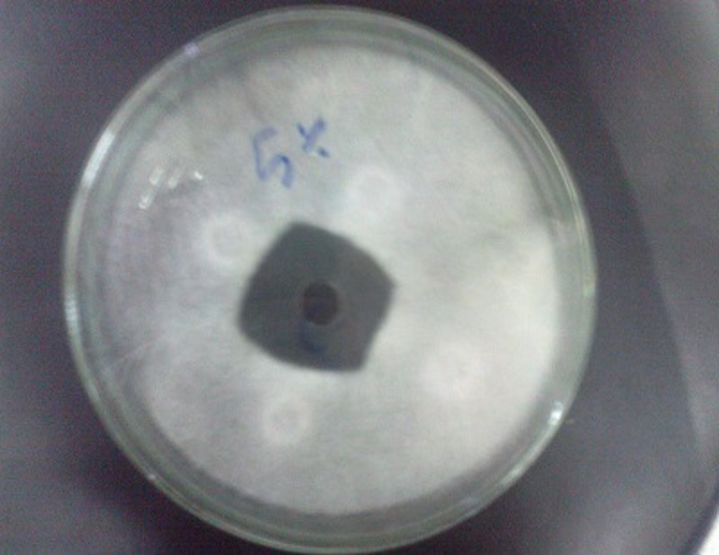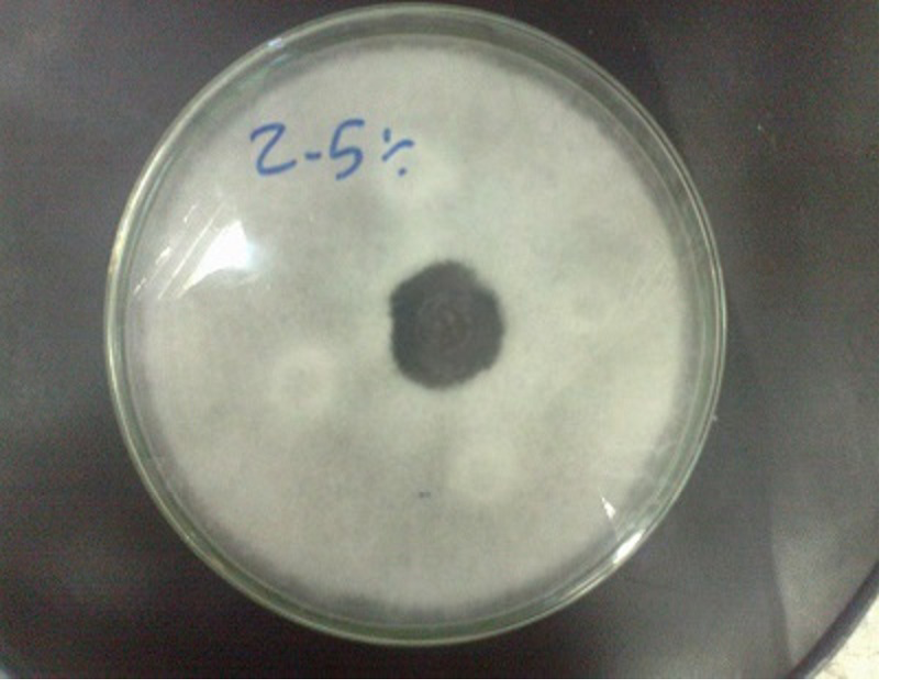 Trichophyton verrucosum grow on potato dextrose agar and shown antifungal activity bergamot 2.5% with zone of inhibition 32 mm