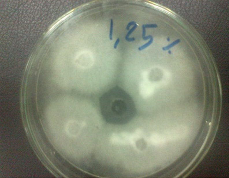 Trichophyton verrucosum grow on potato dextrose agar and shown antifungal activity bergamot 1.25% with zone of inhibition 28 mm