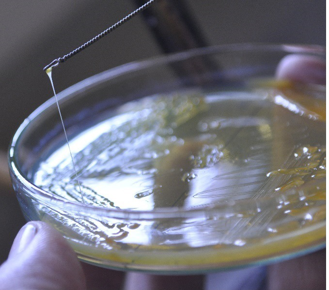 Klebsiella pneumoniae showing virulent hypermucoviscosity trait (string test)