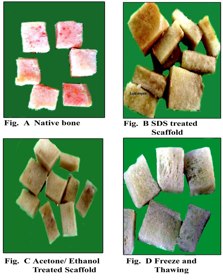 Gross appearance of the scaffolds of Native bone and decellularized bone