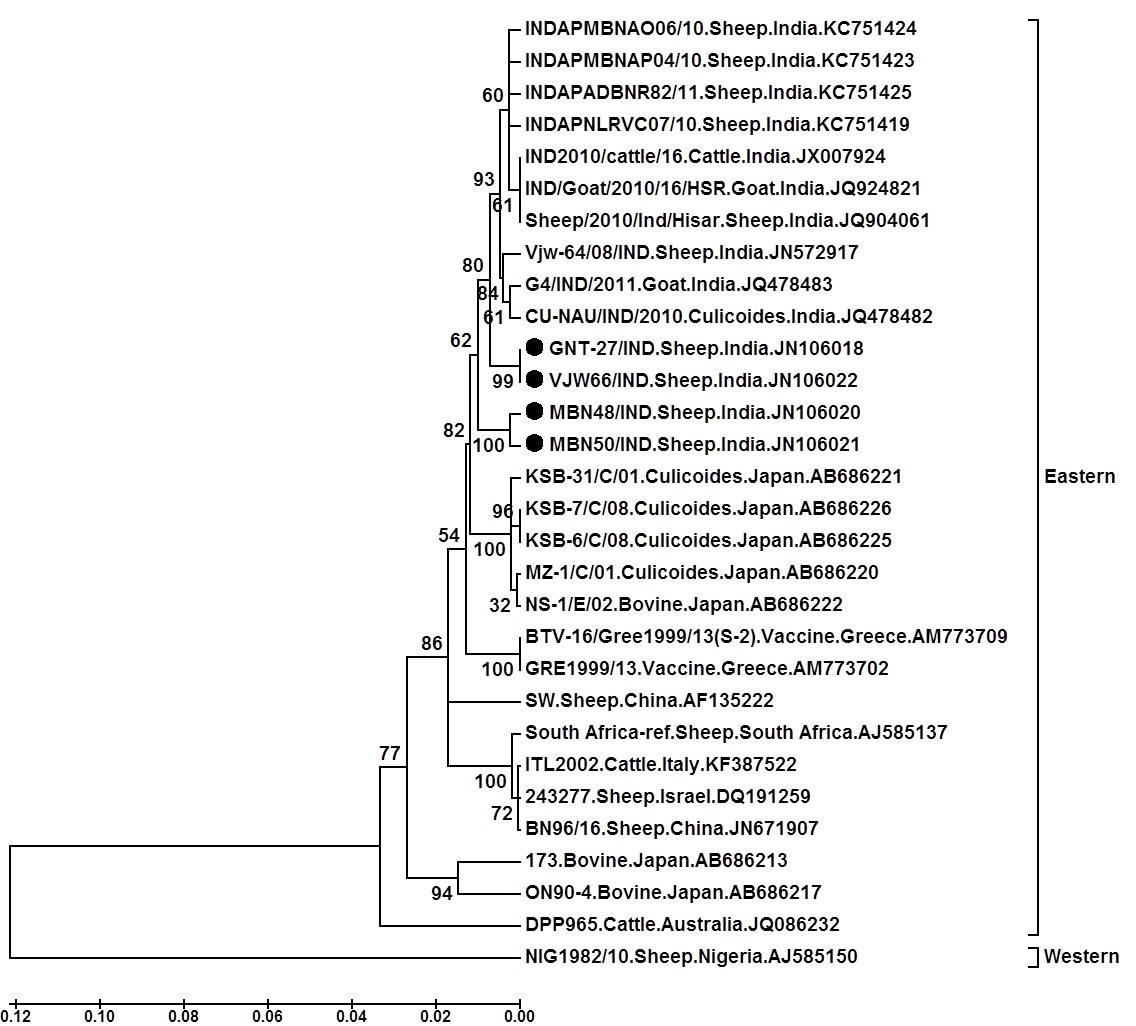 Phylogenetic analysis of vp2 gene of Indian BTV16 isolates